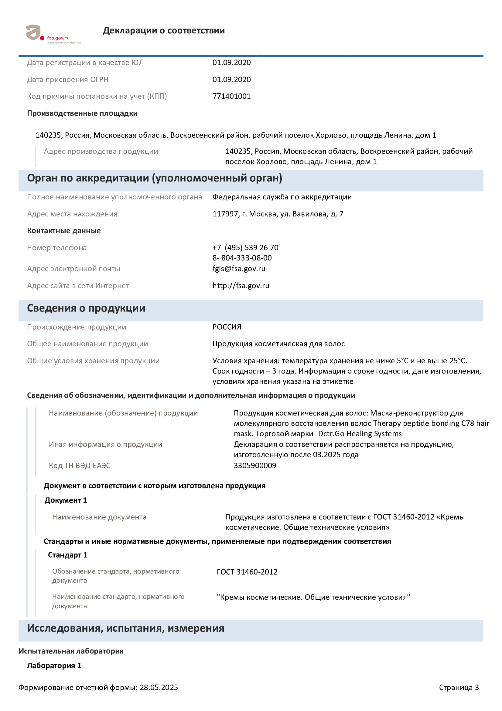 Срок годности маски для восстановления волос: 3 года с даты изготовления.